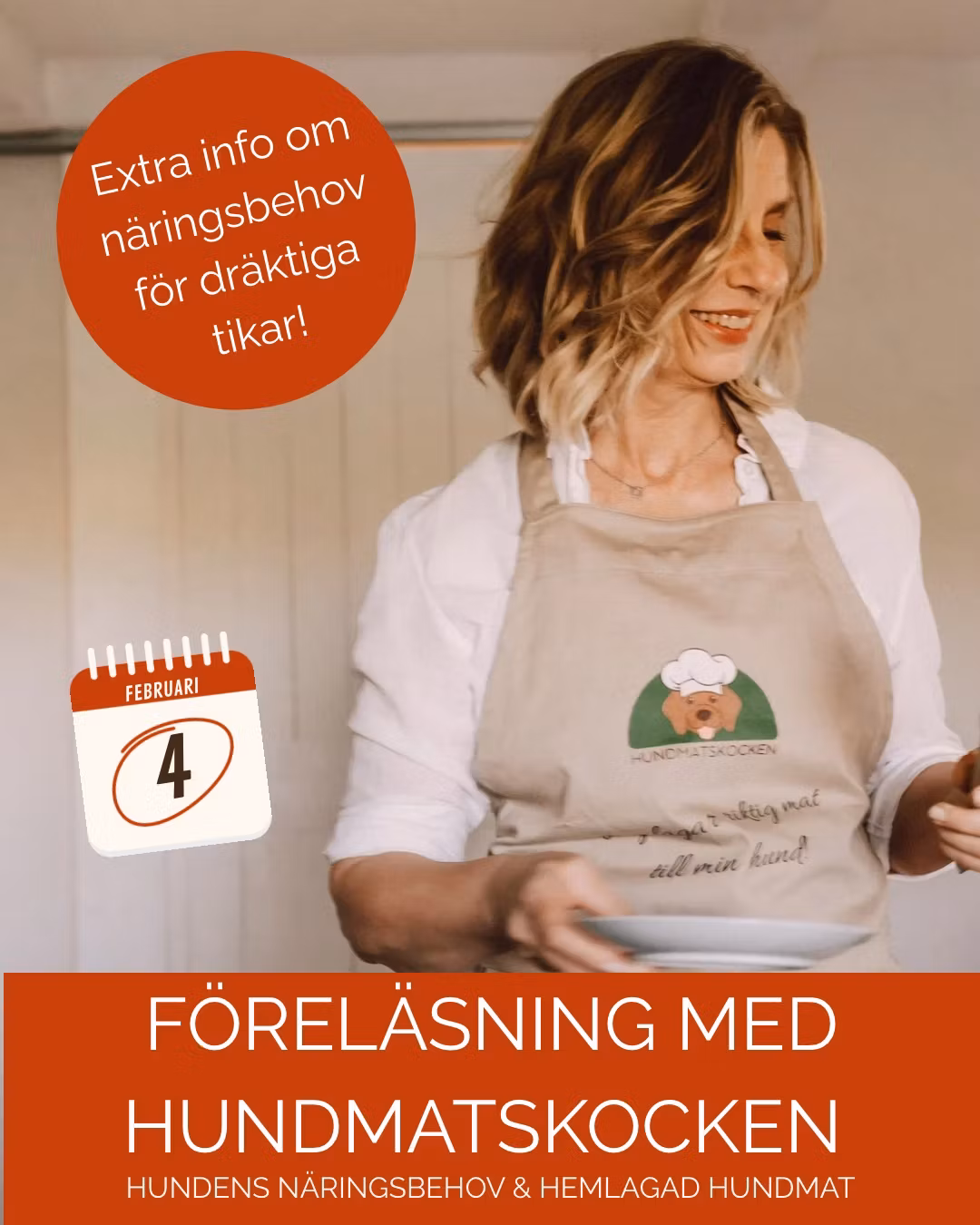 Hur ska man utfodra sin hund för att den ska hålla sig så frisk som möjligt? Vad behöver egentligen en dräktig tik i extra näring under de sista veckorna av dräktigheten? Och vad behöver valparna när de väl börjar äta riktig mat? Detta är några av frågorna som kommer att besvaras under föreläsningen.